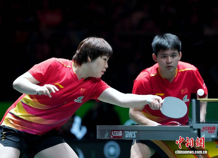 12月2日,四川成都,中国队队员蒯曼(左)与林诗栋在混合双打比赛中。当日,2025年成都国际乒联混合团体世界杯第一阶段比赛中,中国队以8:0战胜智利队。中新社记者 安源 摄